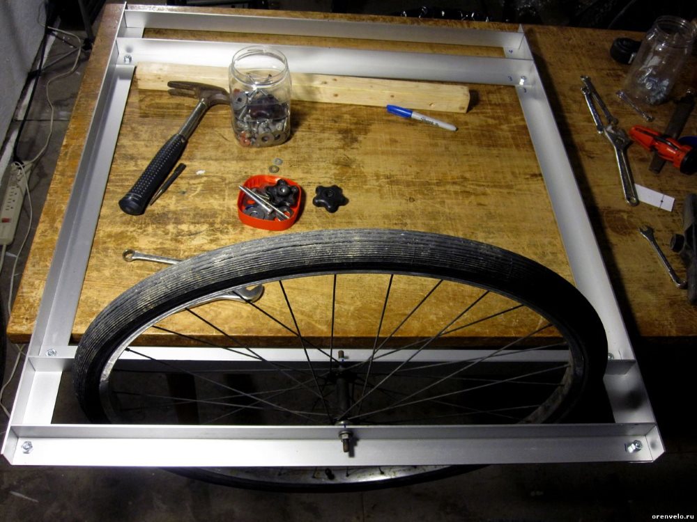 Как вы заметили, понадобится третье колесо. Можно аккуратно взять у соседа, пока он отдыхает после тяжёлого обеда, но лучше не рисковать и заранее его предупредить. Многие будут рады избавиться от рухляди.