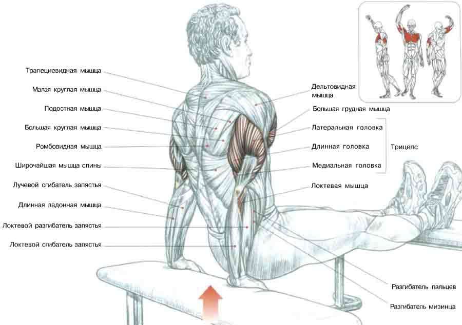 Этот тренинг позволит хорошо накачать руки. В нем прорабатывается трицепс, укрепляются локтевые связки. Как и жим сидя, оно относится к изолирующим упражнениями. В жимах по-французски работает локтевой сустав.