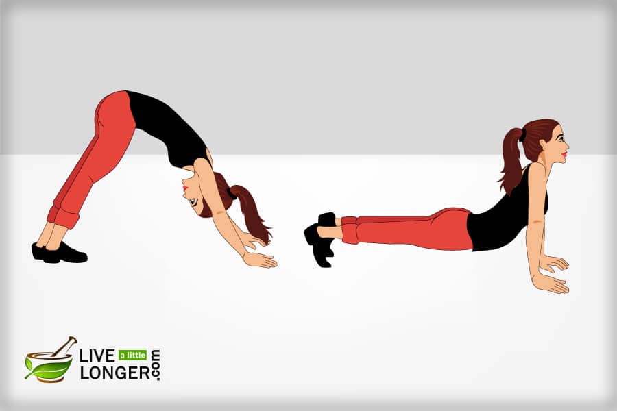 - Шаг 6: При выполнении предыдущего шага поднимите туловище таким образом, чтобы колени были согнуты, а руки оставались прямыми.