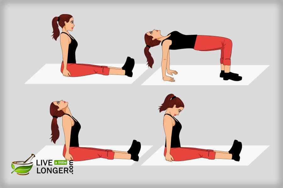- Шаг 3: Выгибая спину наружу, поднимите ягодицы кверху, сгибая ноги в бедрах.