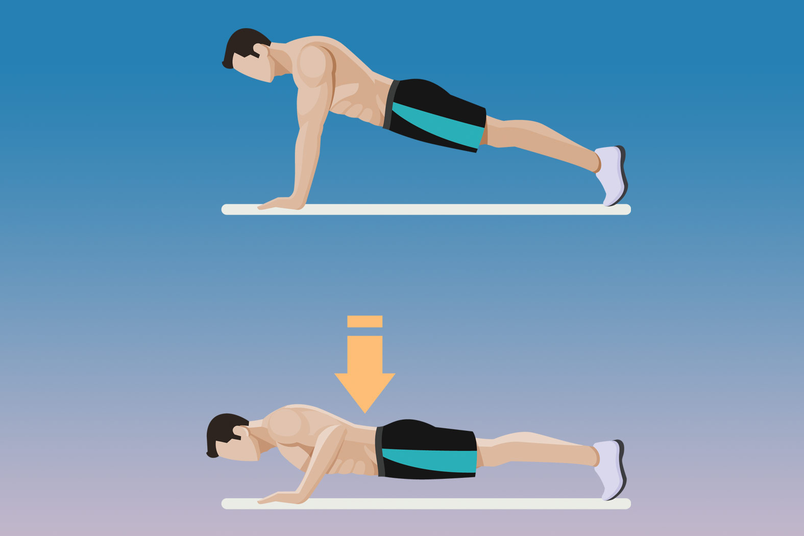 Исходное положение — планка на вытянутых руках, нагрузка на ладони распределена равномерно, мускулатура лопаток находится в осознанном напряжении. На вдохе медленно опустите корпус вниз, ощущая работу мышц груди — на выдохе оттолкнитесь вверх, раскрывая плечи.