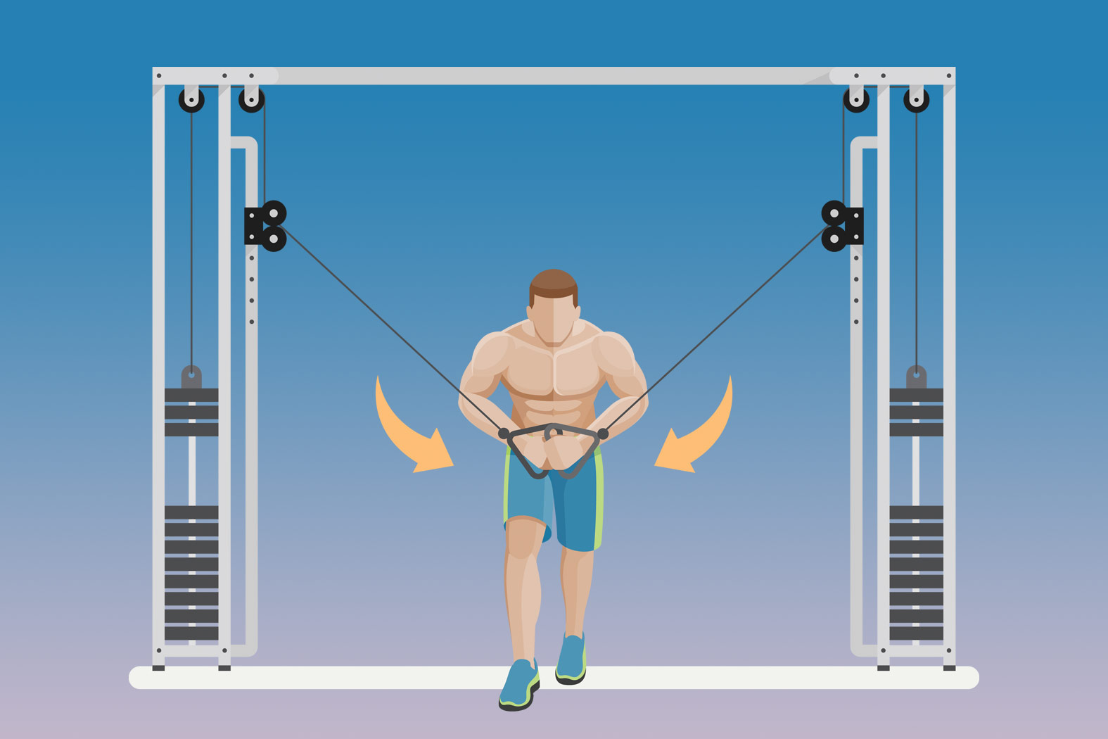 - Сведение рук в кроссовере: 3 подхода по 12 повторений.