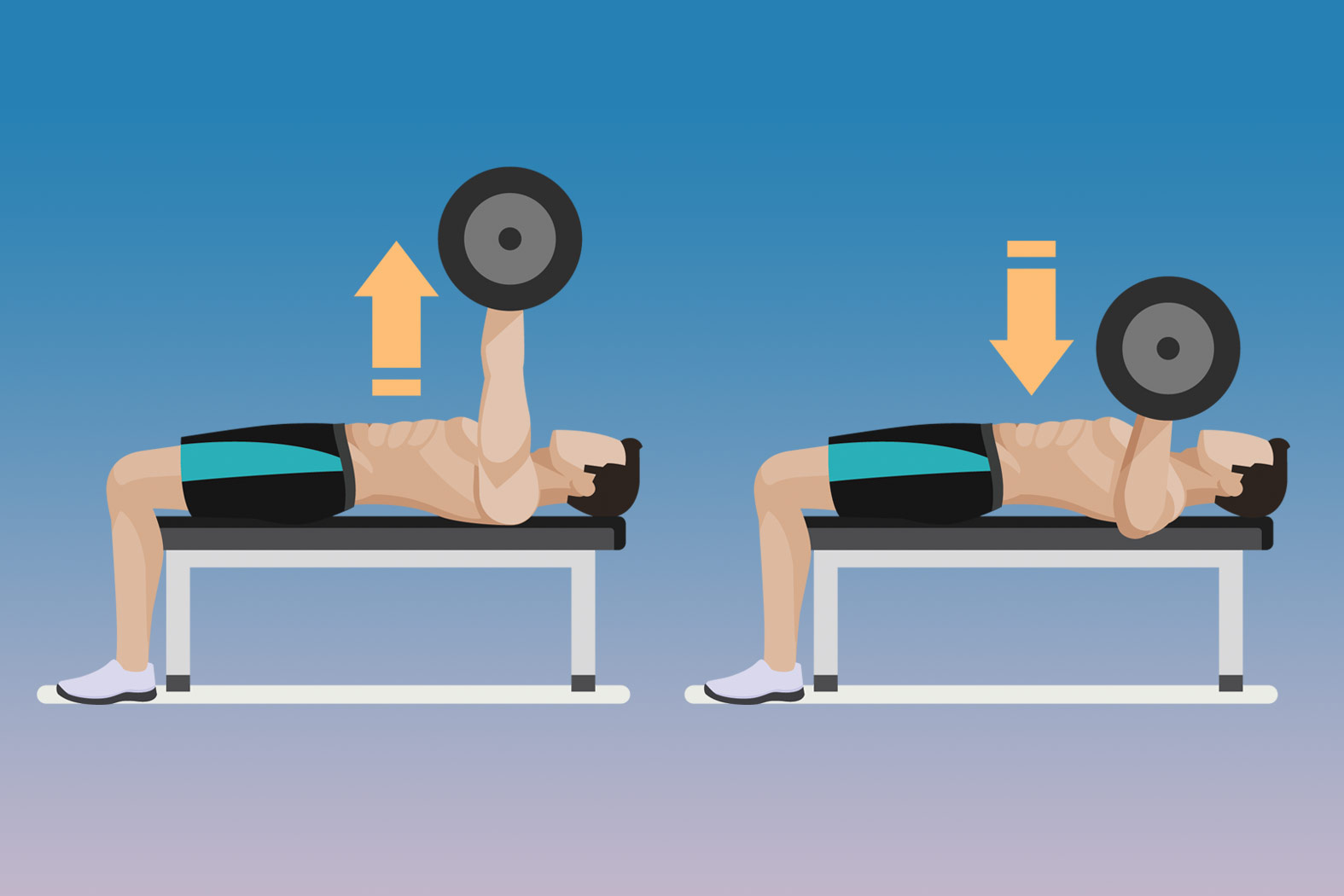 Базовое силовое упражнение для развития грудных мышц. Во время поднятия веса держите мускулатуру корпуса и пресс в осознанном напряжении и избегайте чрезмерного прогиба поясницы. При опускании веса делайте это плавно и избегайте касания штангой груди.