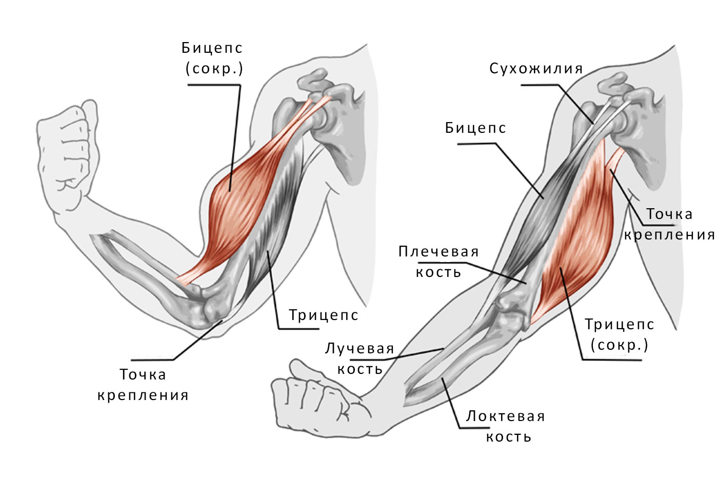 Что касается внешнего вида мышцы, то форма бицепса закладывается генетически — у кого-то он присутствует в виде плотного шарика с пиком, а у кого-то похож на вытянутый овал. Любой вариант формы бицепса можно сделать привлекательным при регулярном физическом тренинге.
