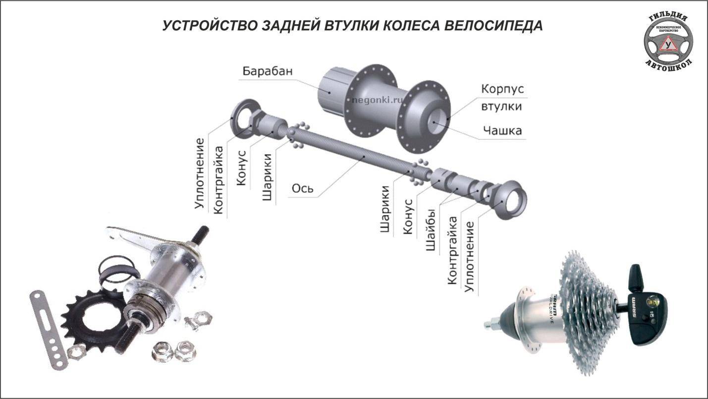 Осевые гайки должны быть затянуты так, чтобы не препятствовать вращению. Как видите, в разборе передней втулки нет ничего сложного, задняя втулка усложняется кассетами, которые нужно снять и тормозными дисками. Усложняет конструкцию так же встроенный механизм свободного хода. Поэтому к сборке и разборке нужно относиться с особой внимательностью.