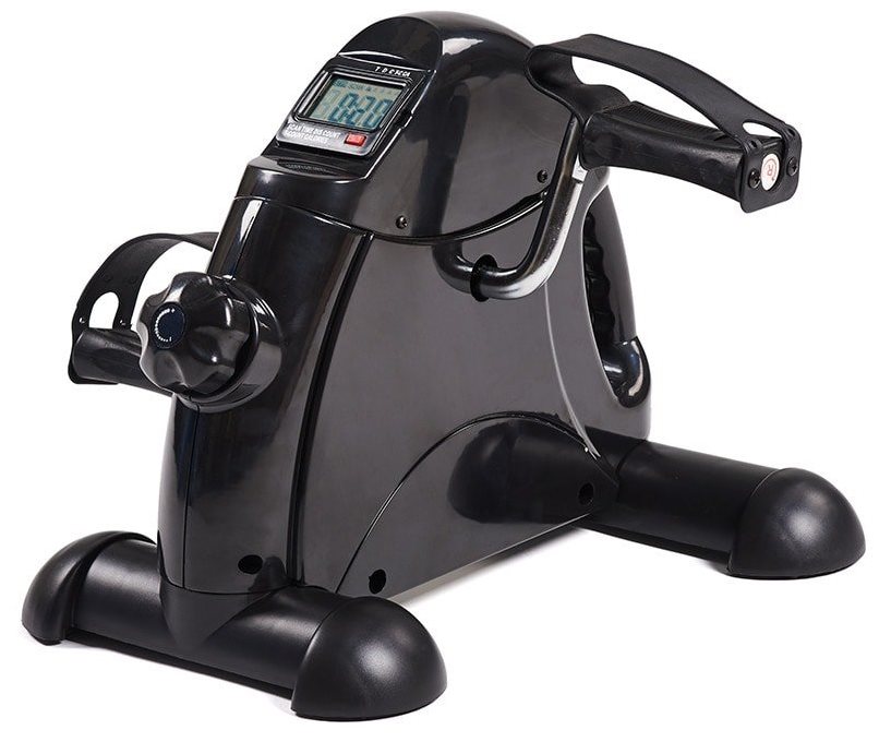 Компактная конструкция для домашнего использования по доступной цене. Присутствует бесступенчатая система изменения нагрузки механического типа. Дает возможность укрепить как руки, так и ноги. Бортовой компьютер предоставляет реальную информацию о расходовании калорий, пройденном расстоянии, скорости движения, количестве оборотов в минуту. Педали с ремешками. Предельно допустимая нагрузка – 100 кг.