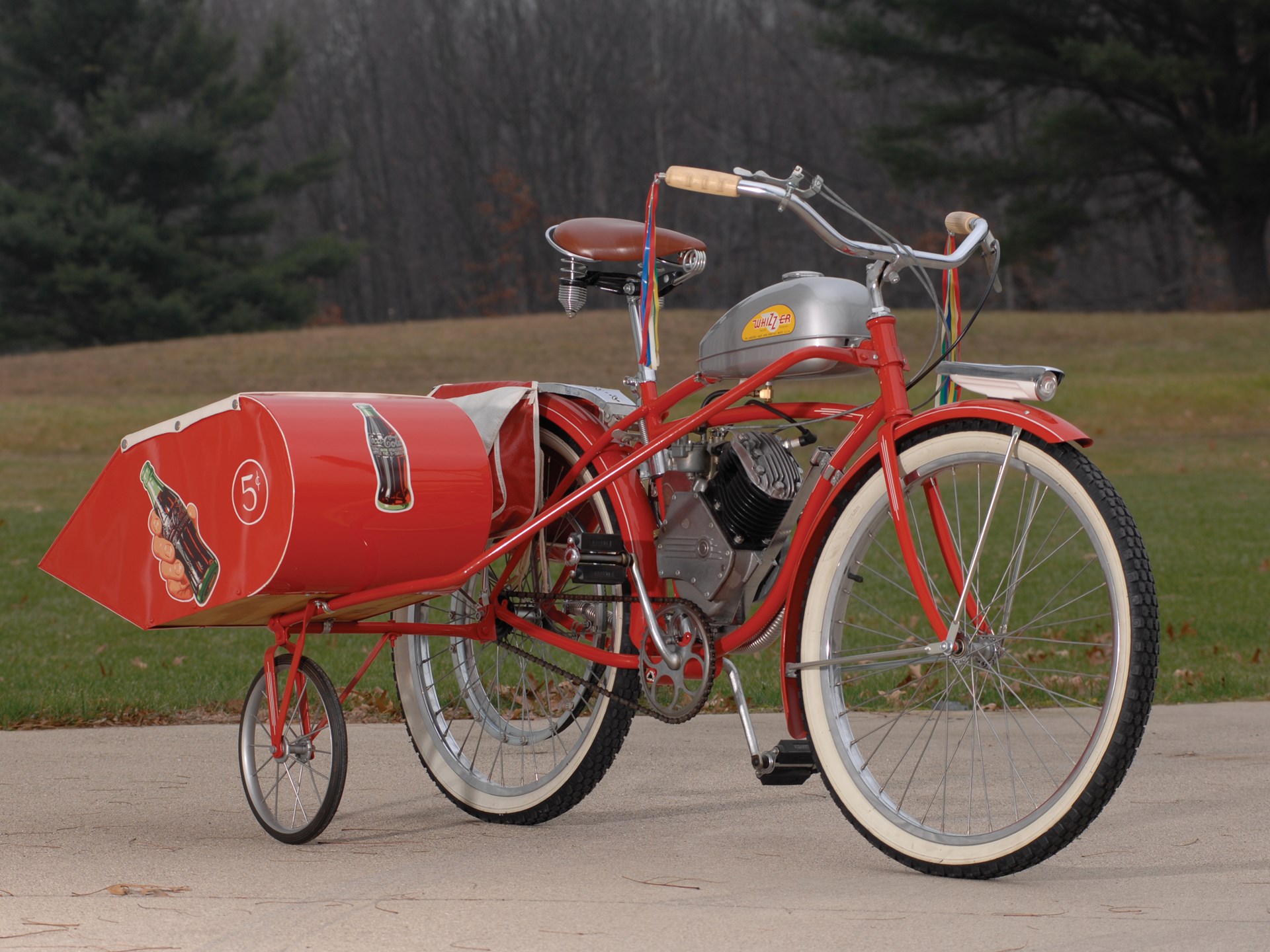 - Модели, оснащенные двигателем с дисковым сцеплением. Мотор находится над кареткой педалей в рамной развилке, соединен с задней ведомой звездой цепью. Рукоятка сцепления размещена на руле с левой стороны. Подобные модели можно завести с буксира, но в то же время они требуют установки дополнительного оборудования (топливный бак, рукоятка сцепления и щиток).
