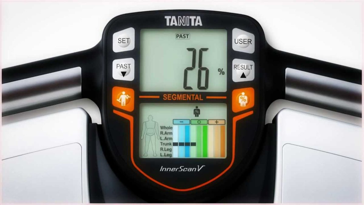 - Tanita BC-575. Этот прибор способен не только определить отношение воды и жира, но и мышечную массу, а также висцеральный жир.