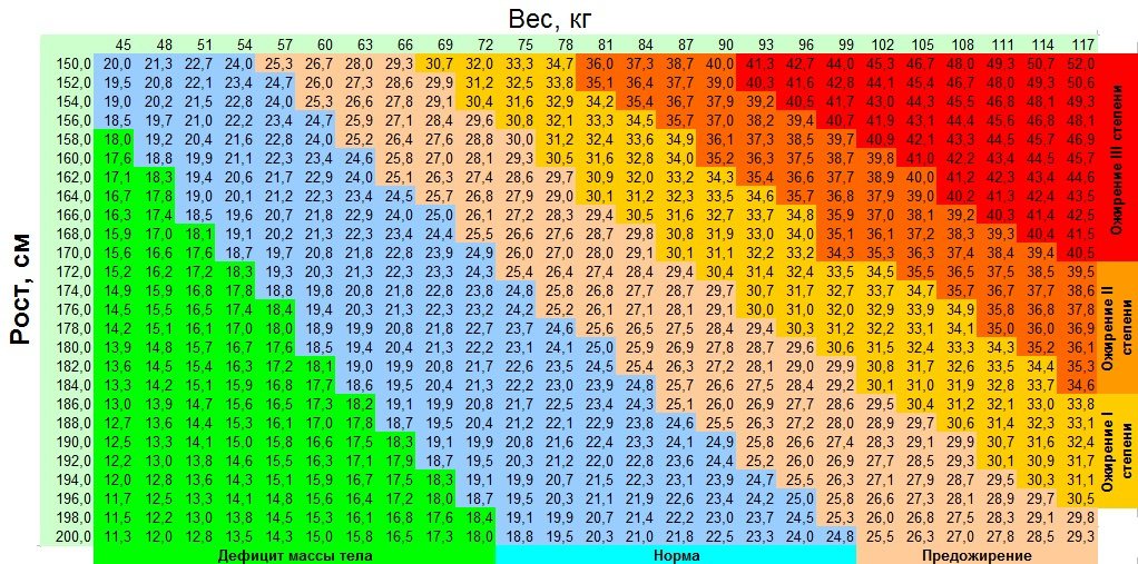 - Соотношение роста и массы тела.