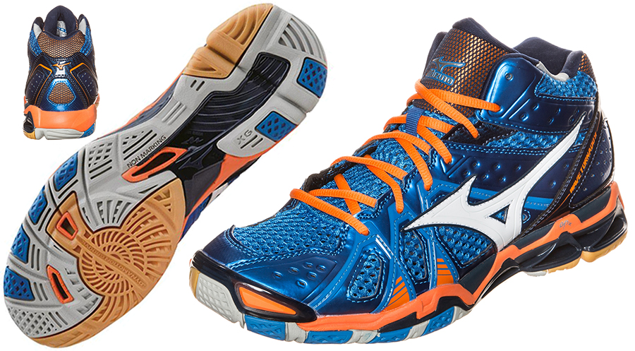 - Mizuno. Достойный конкурент компании Asics, использующий технологию «wave» при создании обуви. Специальная легкая пластина-основание «поглощает» энергию ударных нагрузок при прыжках. Бренд адаптирует модели обуви под конкретные напольные покрытия. Пользуются спросом кроссовки Mizuno LIGHTNING, Mizuno TORNADO.