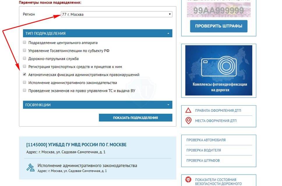 Если всё же с адресом у вас остаются проблемы, то все штрафы ГИБДД с камер автофиксации (кроме административных санкций за парковку на региональном уровне) приходят из Центра автофиксации – ЦАФАП. Выписывают их от имени главного филиала региона, где вы проживаете, и найти его можно на официальном сайте Госавтоинспекции.