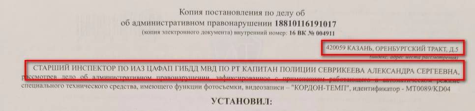 На оборотной стороне копии постановления находим адрес и звание с именем должностного лица полностью – они нам и понадобятся в дальнейшем.