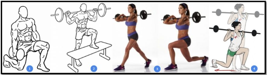Варианты выпадов со штангой на плечах