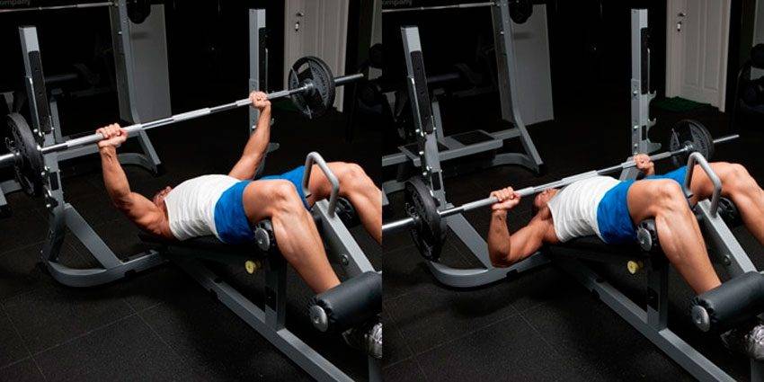 Эффективная схема – совмещать жим на наклонной скамье с отрицательным углом.